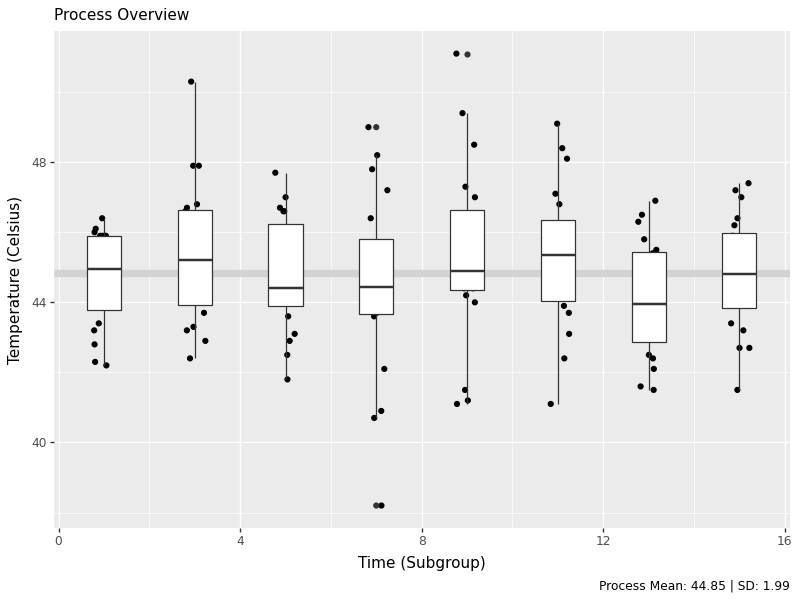 labs(x='Time (Subgroup)', y='Temperature (Celsius)', subtitle='Process Overview', caption=tab['caption'][0]))